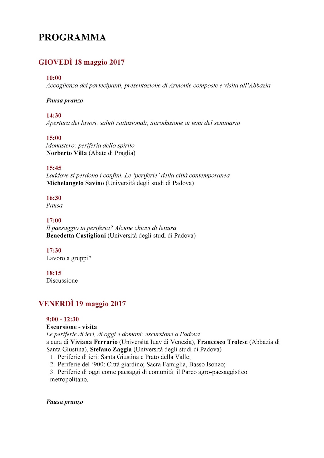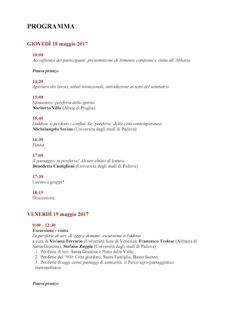 SEMINARIO 2017 (18 – 20 maggio): chiusura delle iscrizioni il 10 marzo da wp_8955109 | Feb 9, 2017 | Uncategorized | 0 commenti Monastero e territorio: periferie dello spirito e dello spazio a cura di Benedetta Castiglioni e Stefano Zaggia (Università degli studi di Padova) Abbazia di Praglia – Centro Congressi 18-20 maggio 2017 Invia commentoDevi essere connesso per inviare un commento.